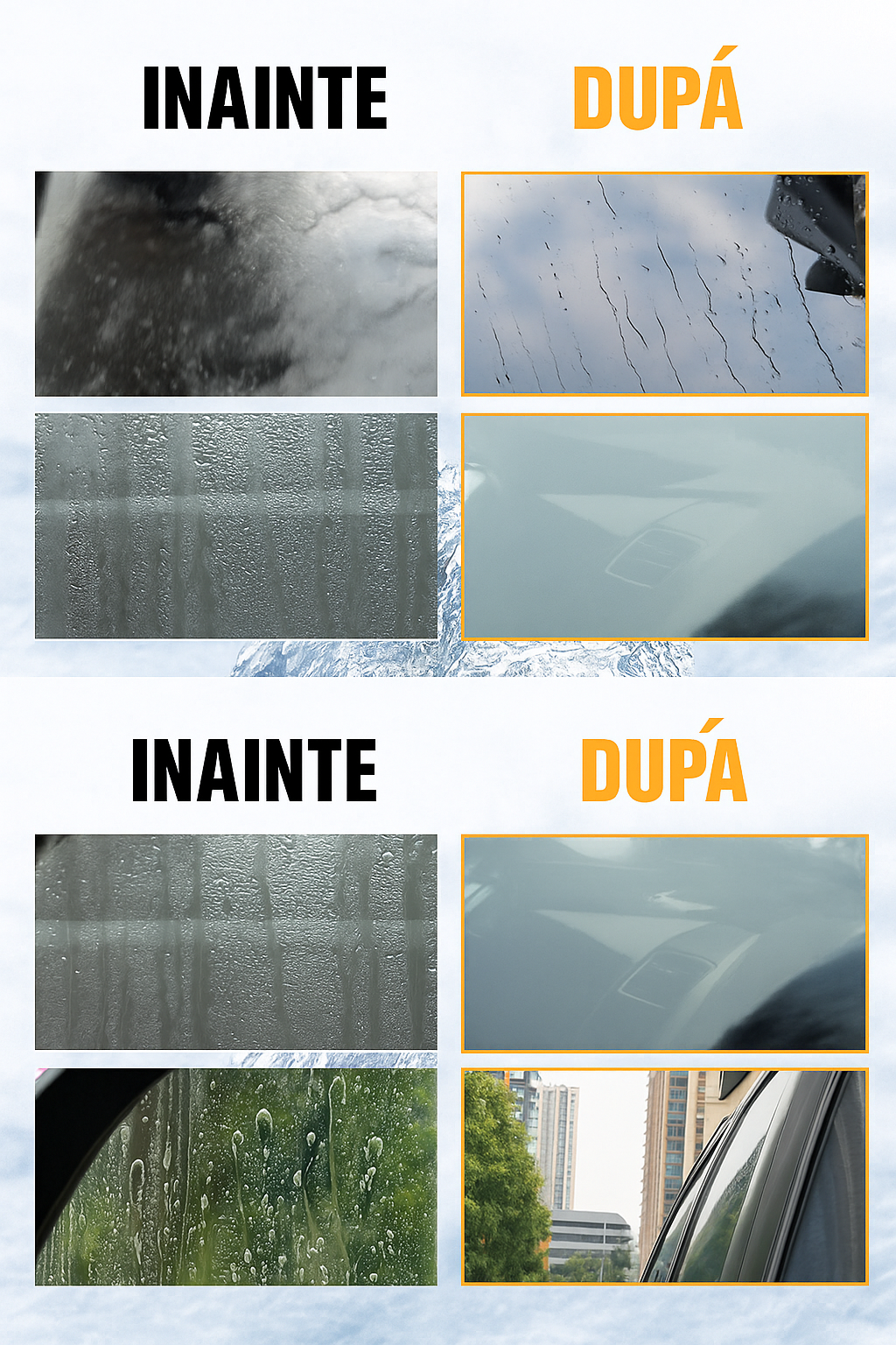 Am dat o singură dată pe parbriz și oglinzi și s-a văzut diferența imediat. Nu se mai aburesc deloc dimineața, chiar și când e frig afară.